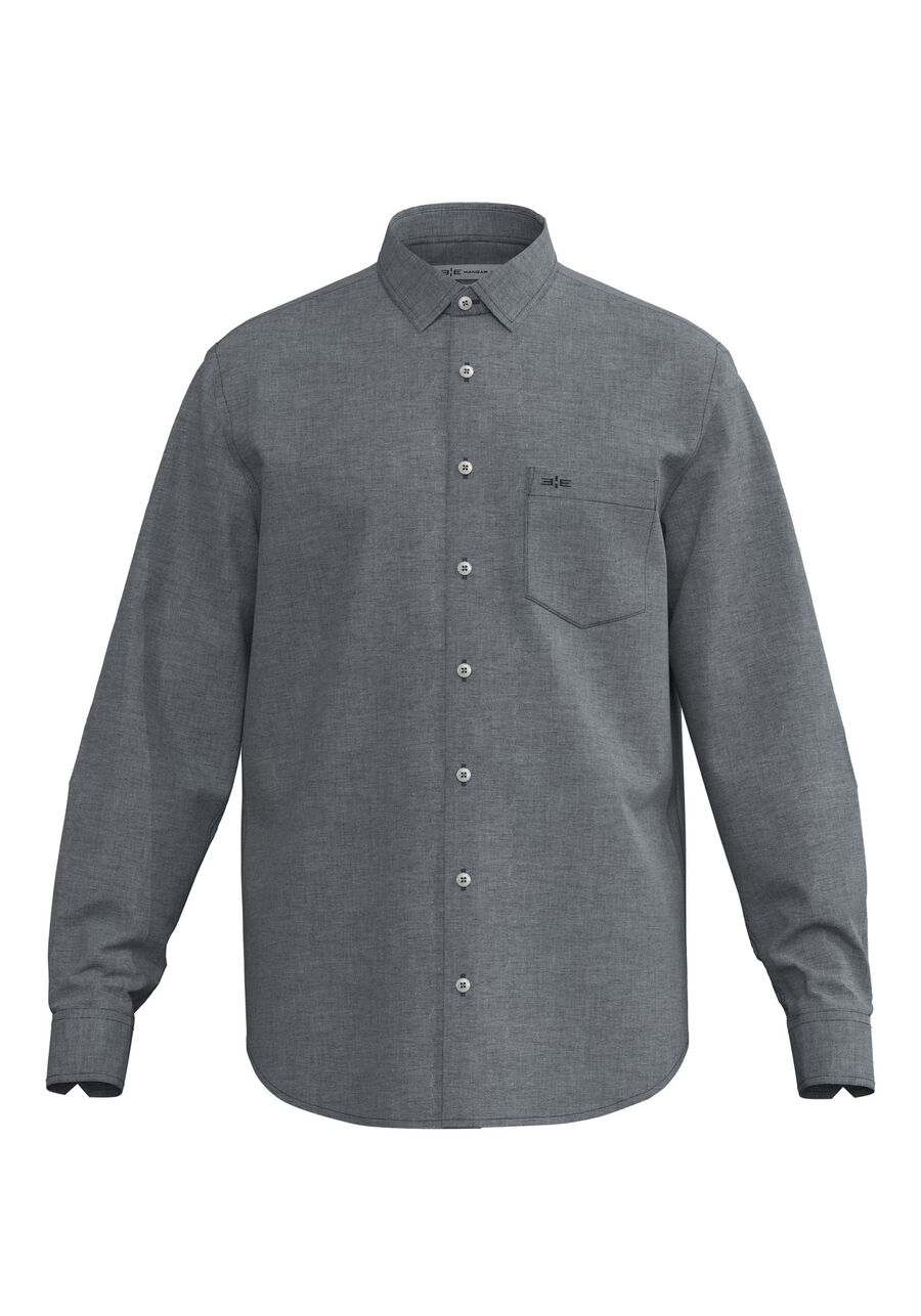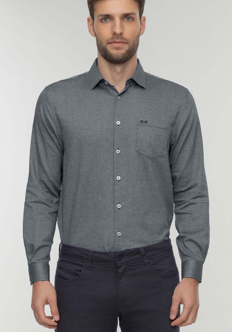 Adicione versatilidade ao seu guarda-roupa com esta camisa masculina de mangas longas e modelagem comfort. O bolso bordado com a identidade Hangar 33 traz um detalhe discreto repleto de originalidade.
