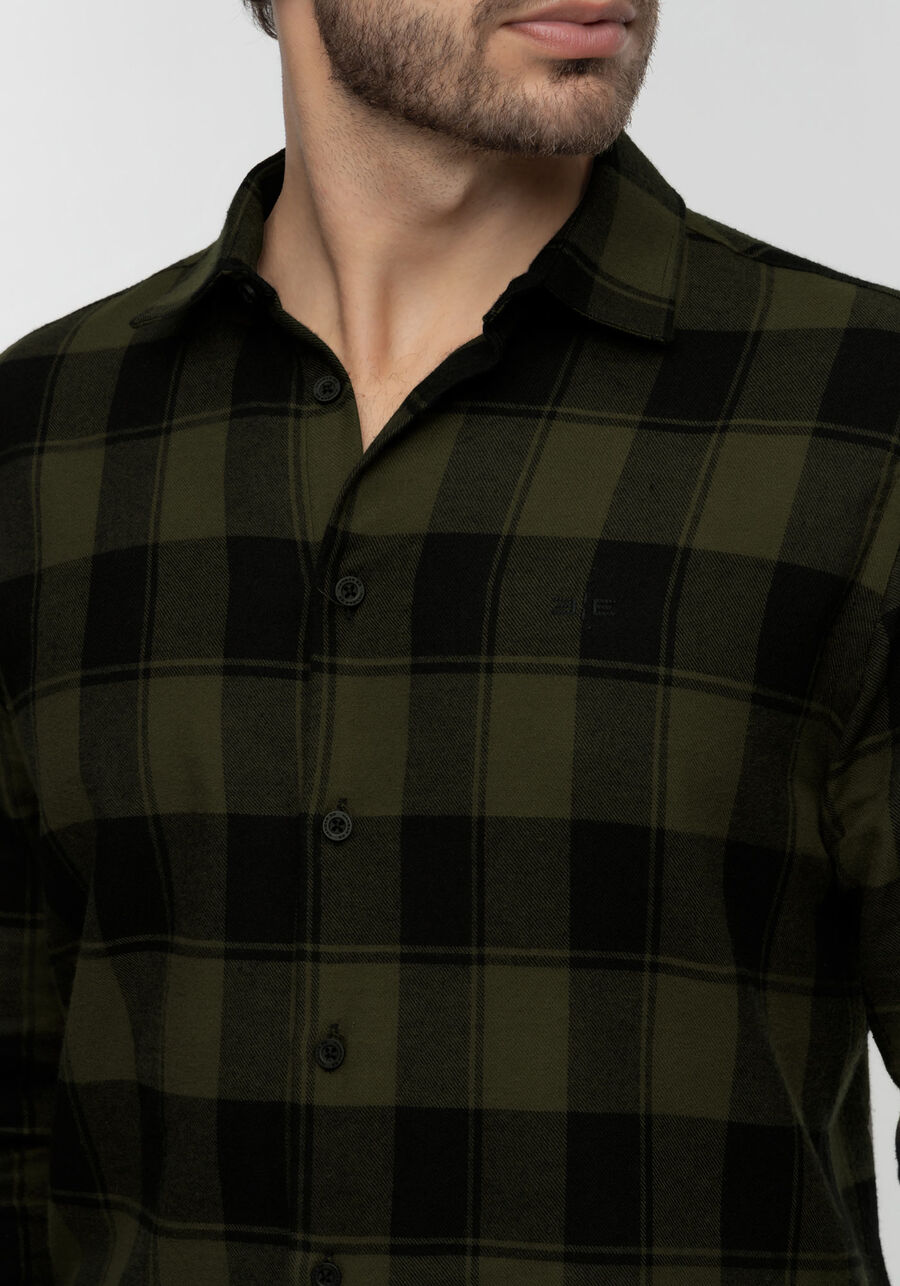 Feita com tecido flanelado, toque ultra macio, modelagem slim fit, gola clássica e fechamento por botões.